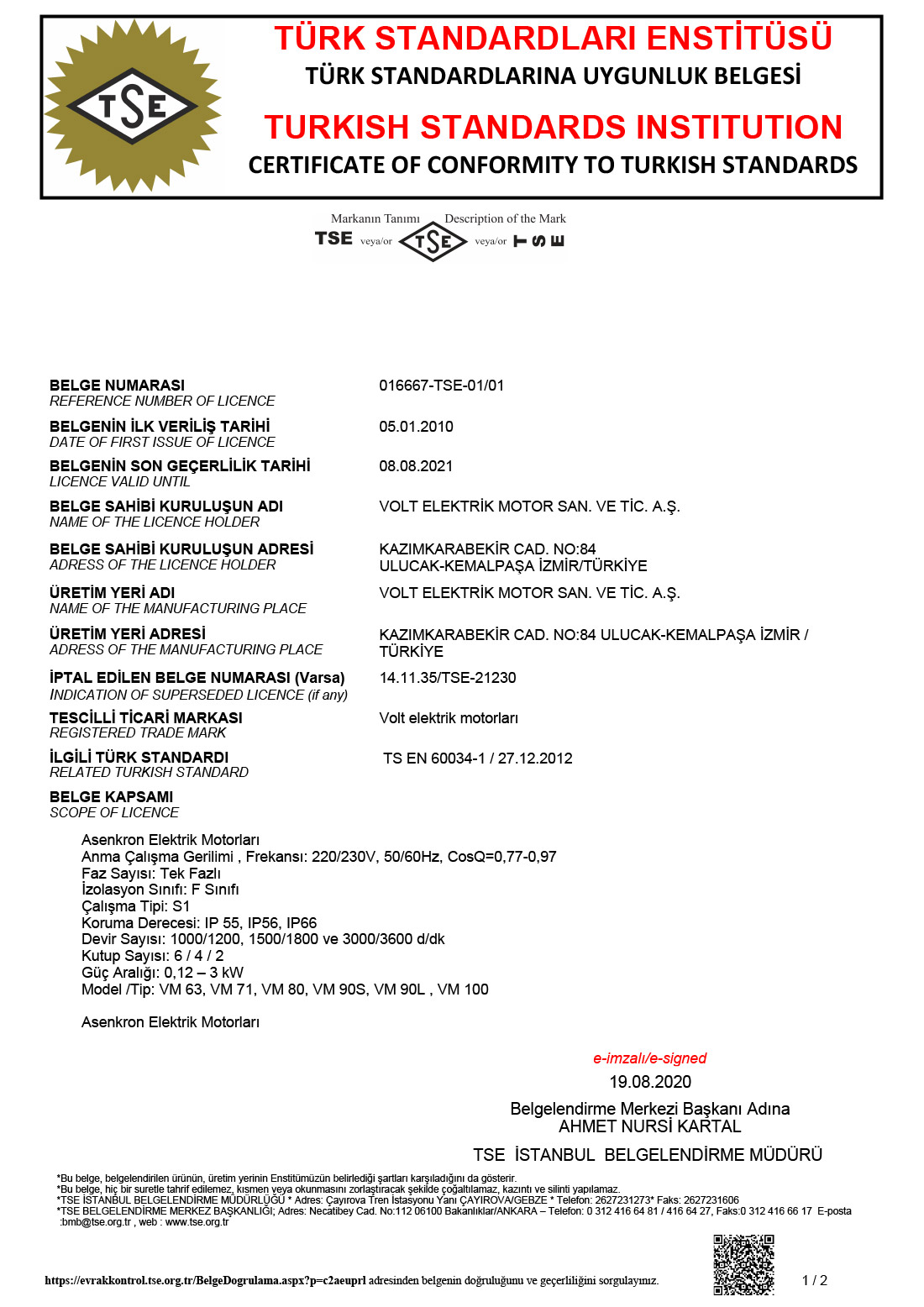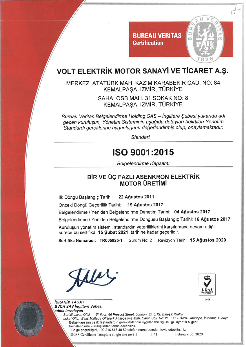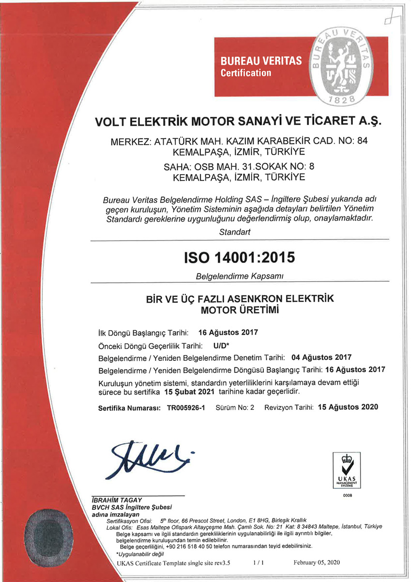 | ISO 14001:2015 BİR VE ÜÇ FAZLI ASENKRON ELEKTRİK MOTOR TASARIMI, ÜRETİMİ VE SATIŞI |