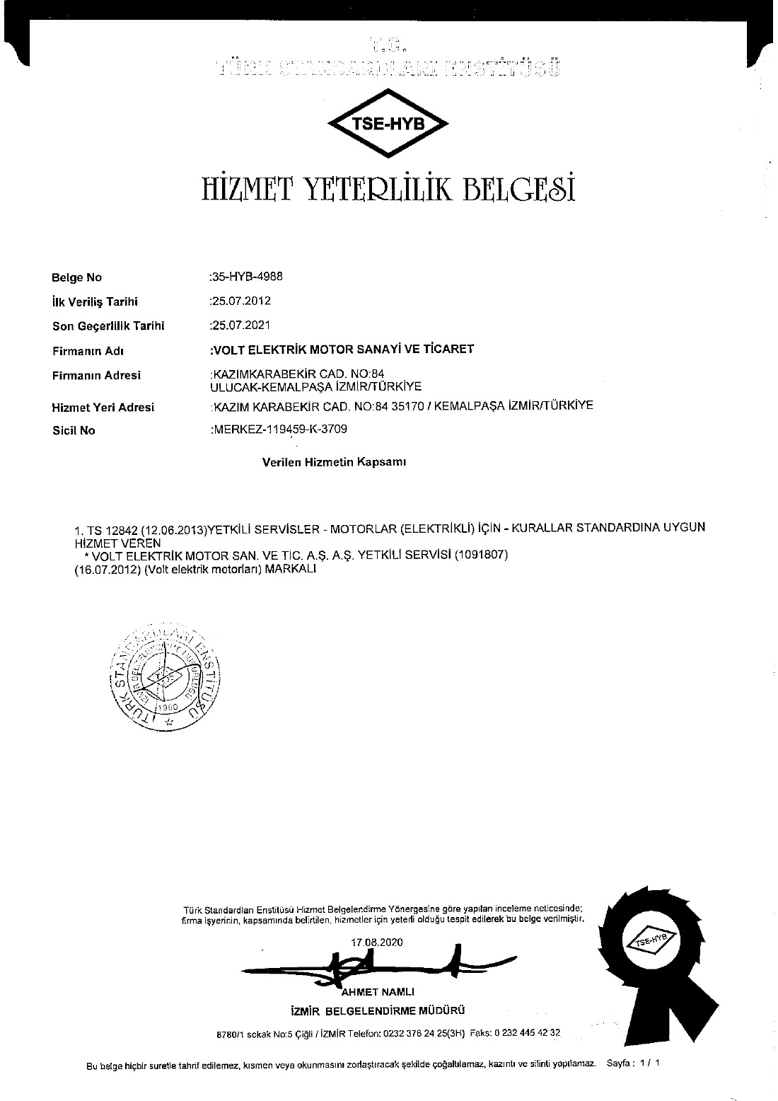 | TSE HİZMET YETERLİLİK BELGESİ |